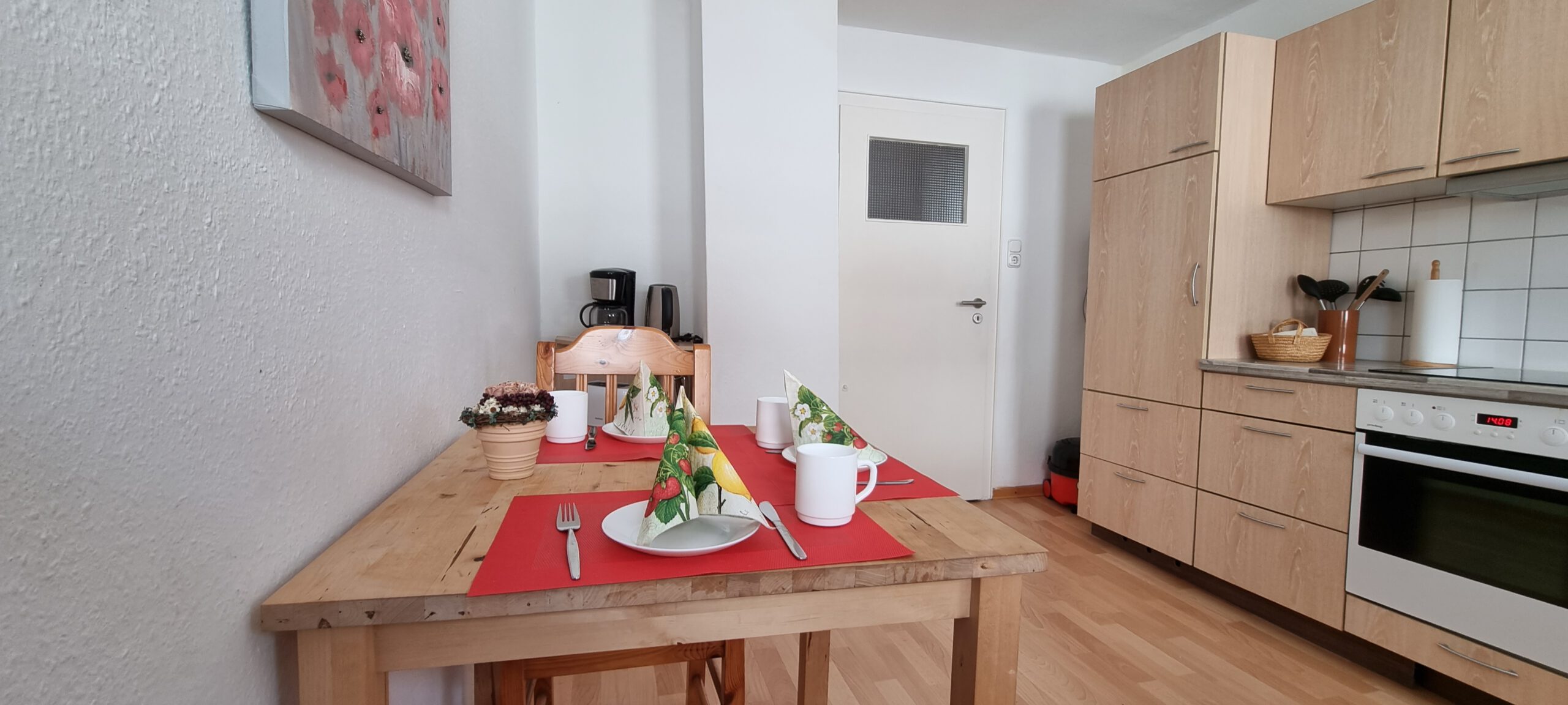 Mit ca. 49m² bietet das Appartment Nr. 1 Platz für 2-max.4 Personen. (2 Erw. und 2 kinder) Es ist als „FeWO“ nutzbar ab 4, 6 ,9 Übernachtungen ohne Frühstück. Brötchenservice möglich – Sie können im Hotel Brötchen erhalten. Bitte vorher bestellen!